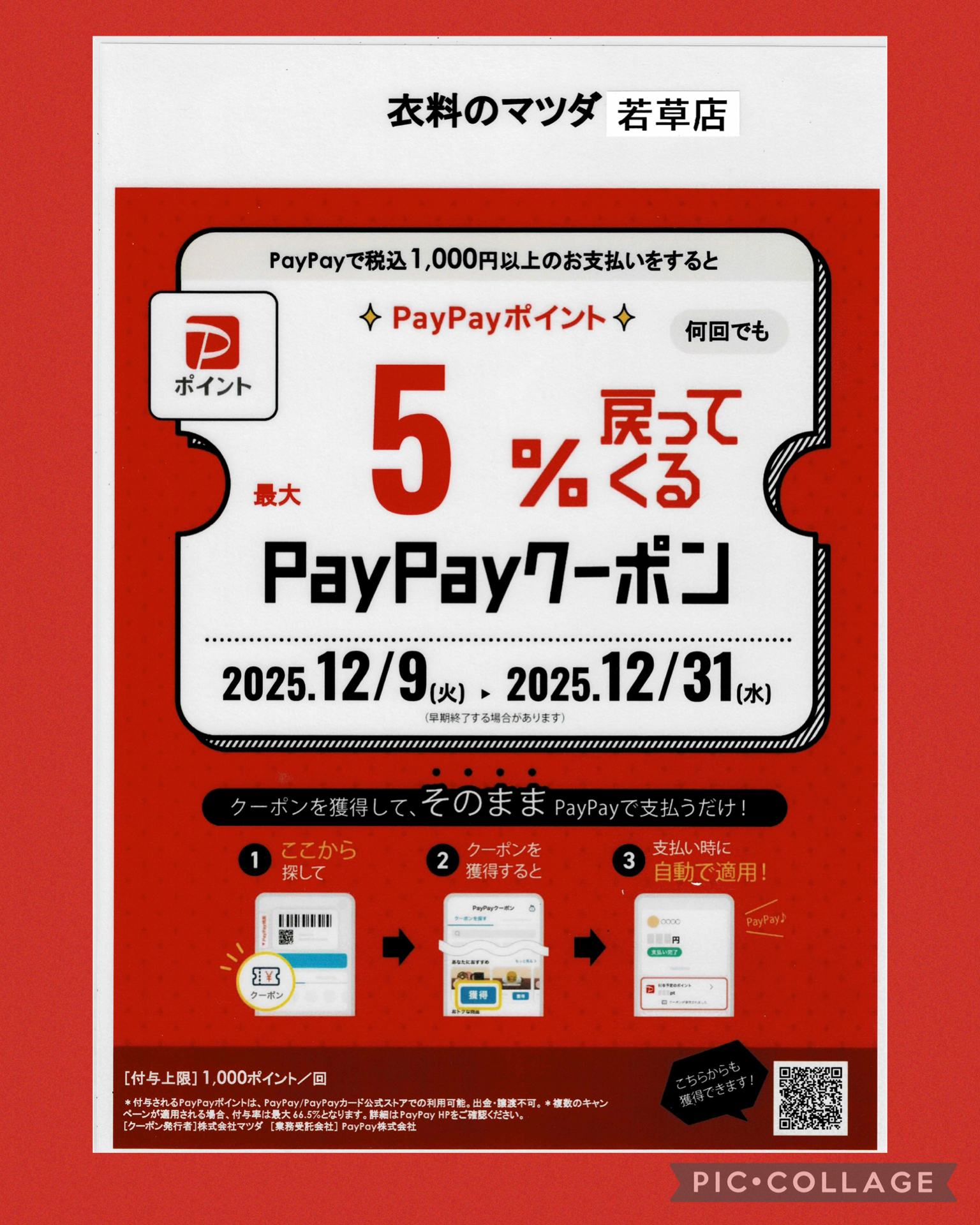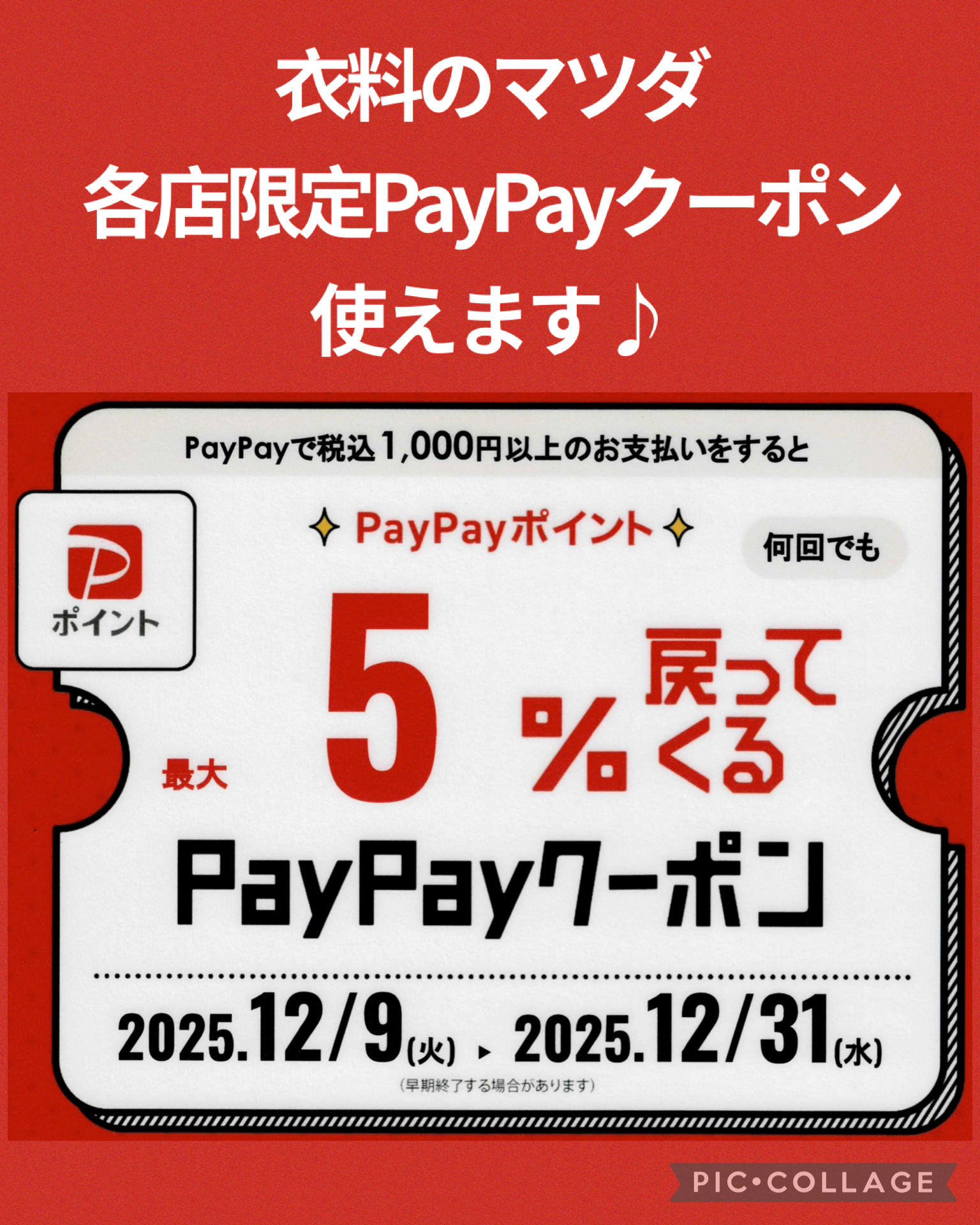 2025.12.09PayPayクーポン使えます 12月9日(火)から31日(水)まで