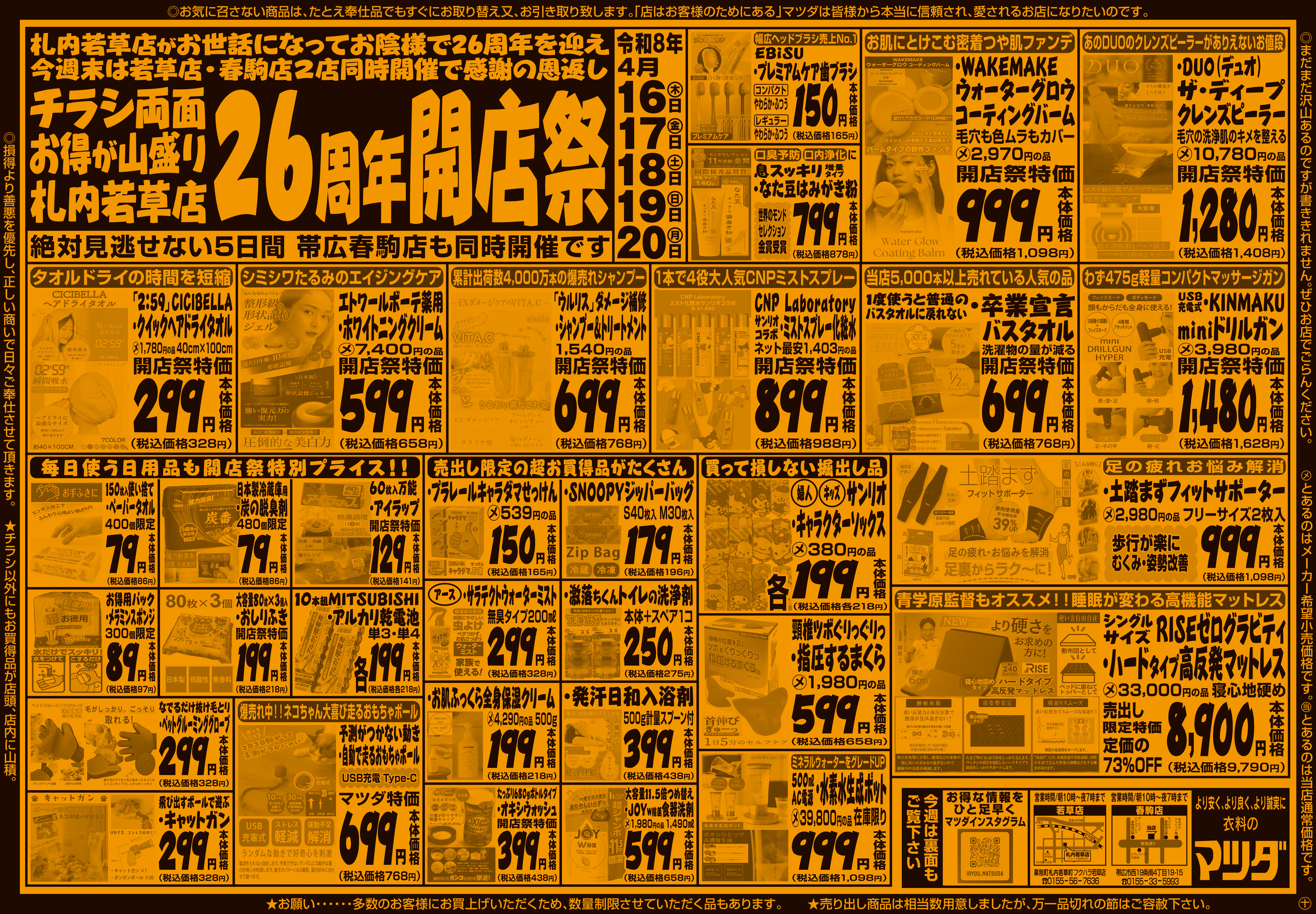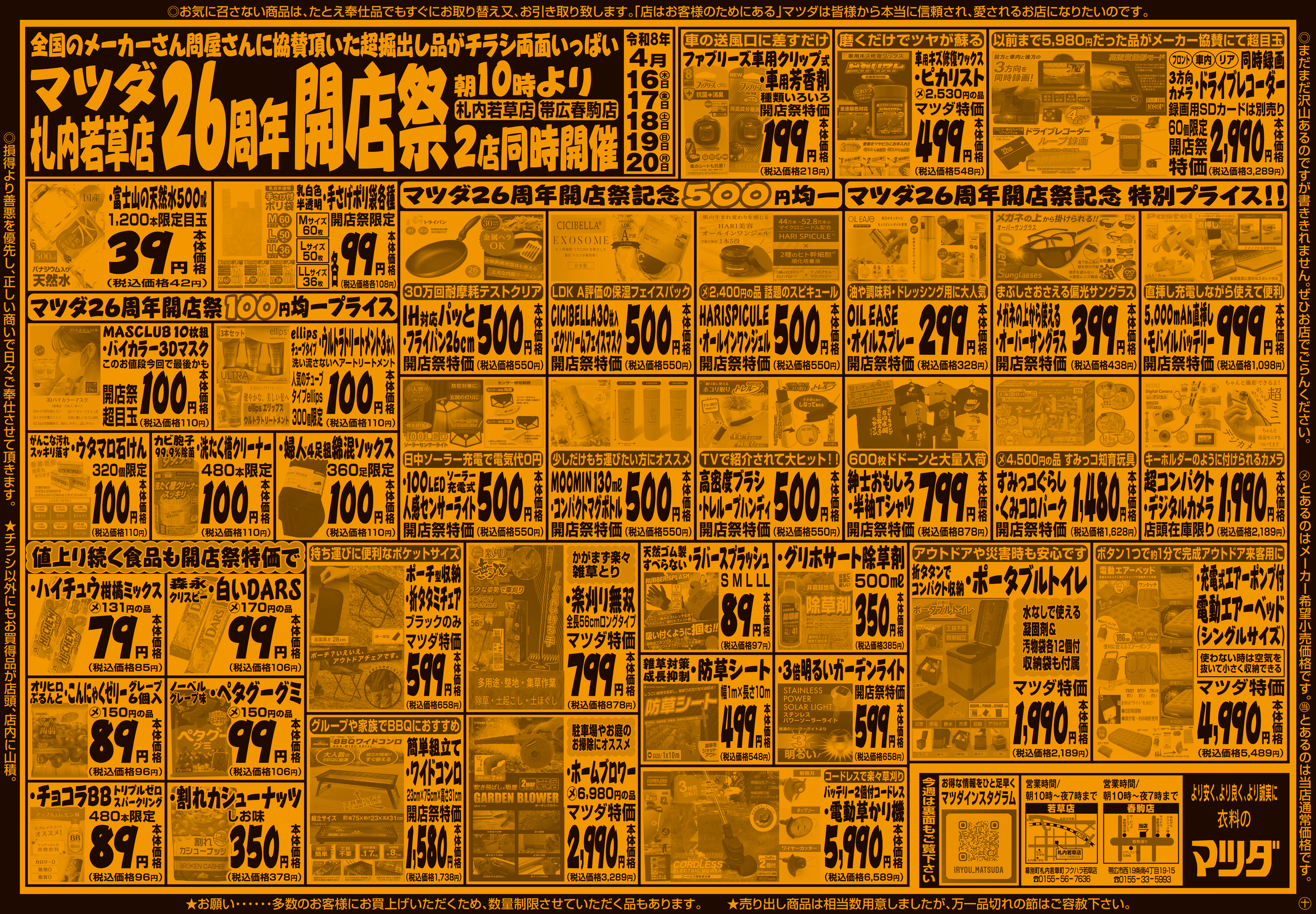 2026.04.15札内若草店 開店祭 4月16日(木)から20日(月)まで