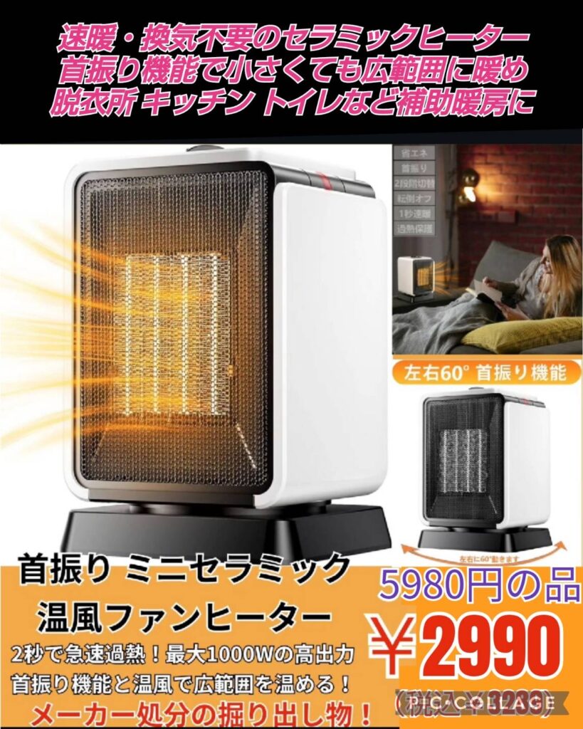 2025.10.11 首振り ミニセラミック 温風ファンヒーター