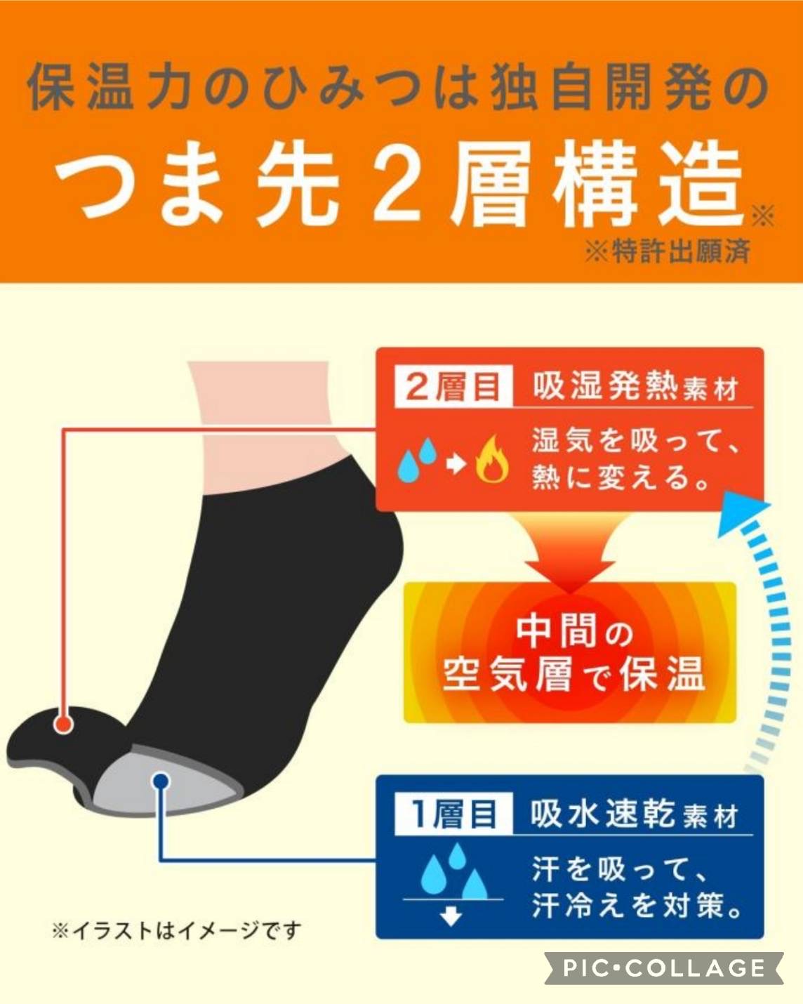 つま先保温力2倍で