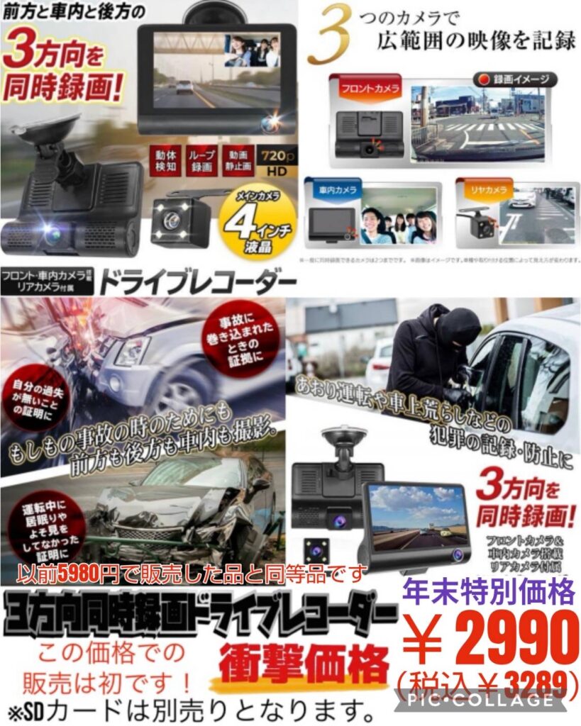 前方 後方 車内 3方向同時録画