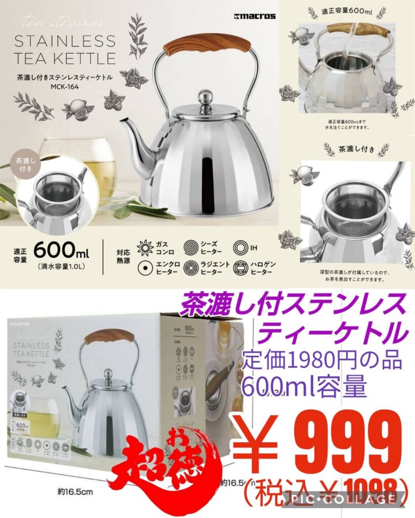 2026.1.7 茶漉し付ステンレス ティーケトル